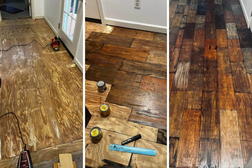 Во објава на Редит под наслов „Не можев да си дозволам дрвени подови – па направив имитација со маркер“ детално ја опишала постапката и објаснила дека во ходникот имала шперплоча која потоа ја преобразила.
