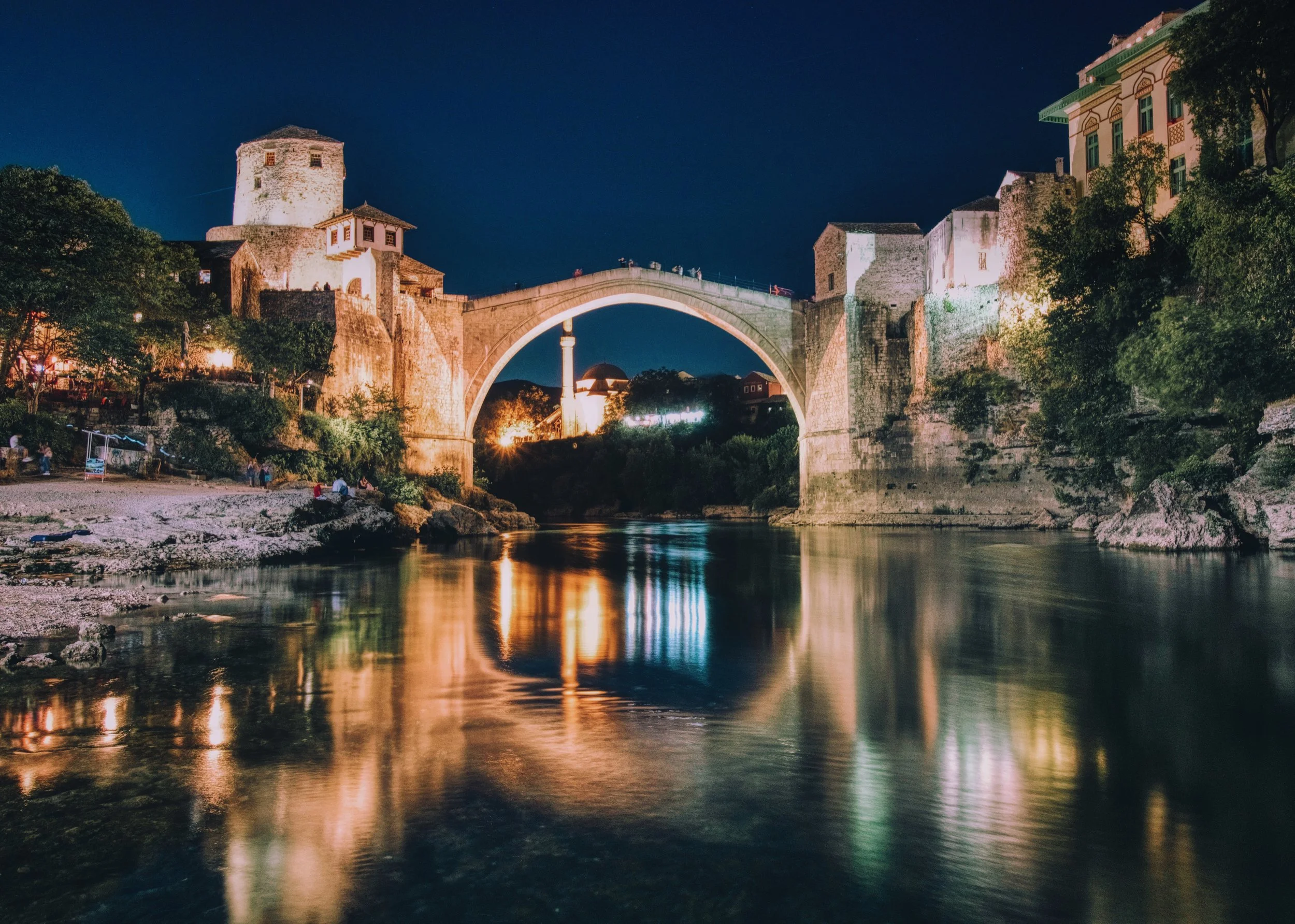 „Трагично, мостот бил цел и уништен за време на војната во Босна во 1993 година, но локалната гордост и меѓународното финансирање помогнале да се обнови саканата градба помеѓу 2001 и 2004 година, вклучително и со камен земен од реката под мостот“, додаде Скалон.