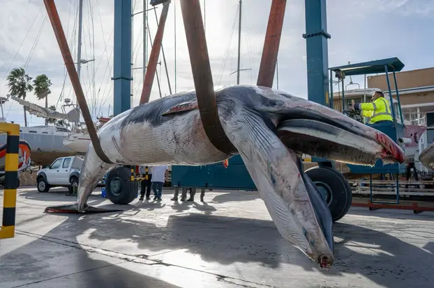 Огромен труп од кит се насука во популарна шпанска марина, а шокирани туристи ја следеа сложената операција за отстранување на пловечкиот труп тежок шест и пол тони. Мртвото животно, долго околу девет метри, било забележано на влезот во Реал Клуб Наутико де Валенсија во понеделник околу пладне. Утврдено е дека станува збор за женка кит перајар (balaenoptera physalus), вториот најголем кит во светот, веднаш по синиот кит.