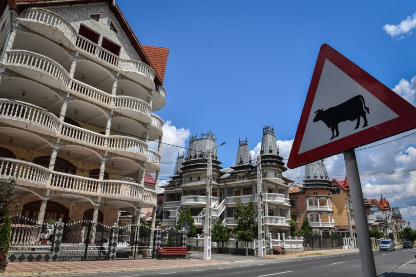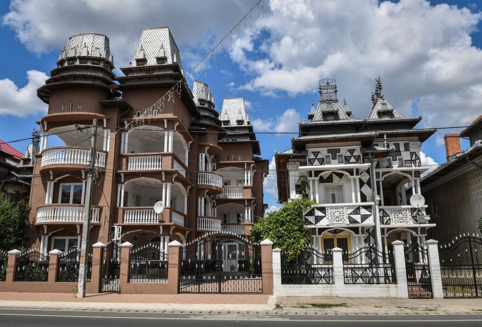 Понекогаш се и копии на постојни згради, како една во селото Бузеску, стотина километри јужно од Букурешт. Таму Дан Финуту, богат член на локалната ромска заедница, својата куќа ја моделирал по зградата на судот на кој бил осуден за измама во 90-тите години од минатиот век.