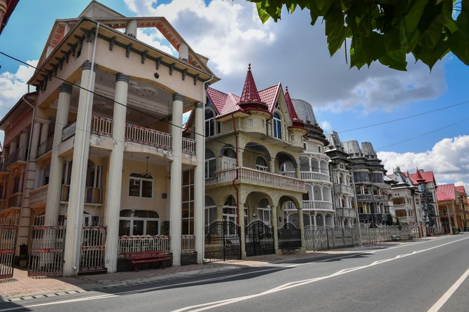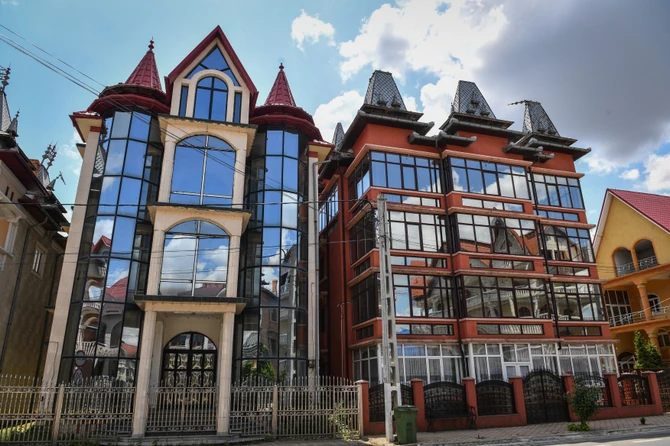 Куќите украсени со високи мермерни столбови, куполи и покриви налик на шатори за свадби, во романската внатрешност се бројат во илјадници.