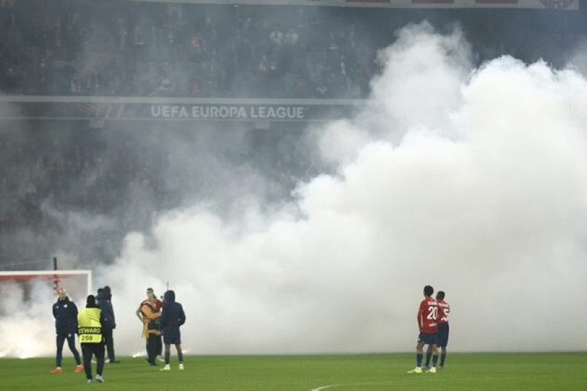 Lille fans throwing flares at their team after a 1-0 loss at home to Crvena zvezda in the Europa League #fkczpic.twitter.com/LlQiAqi4gG