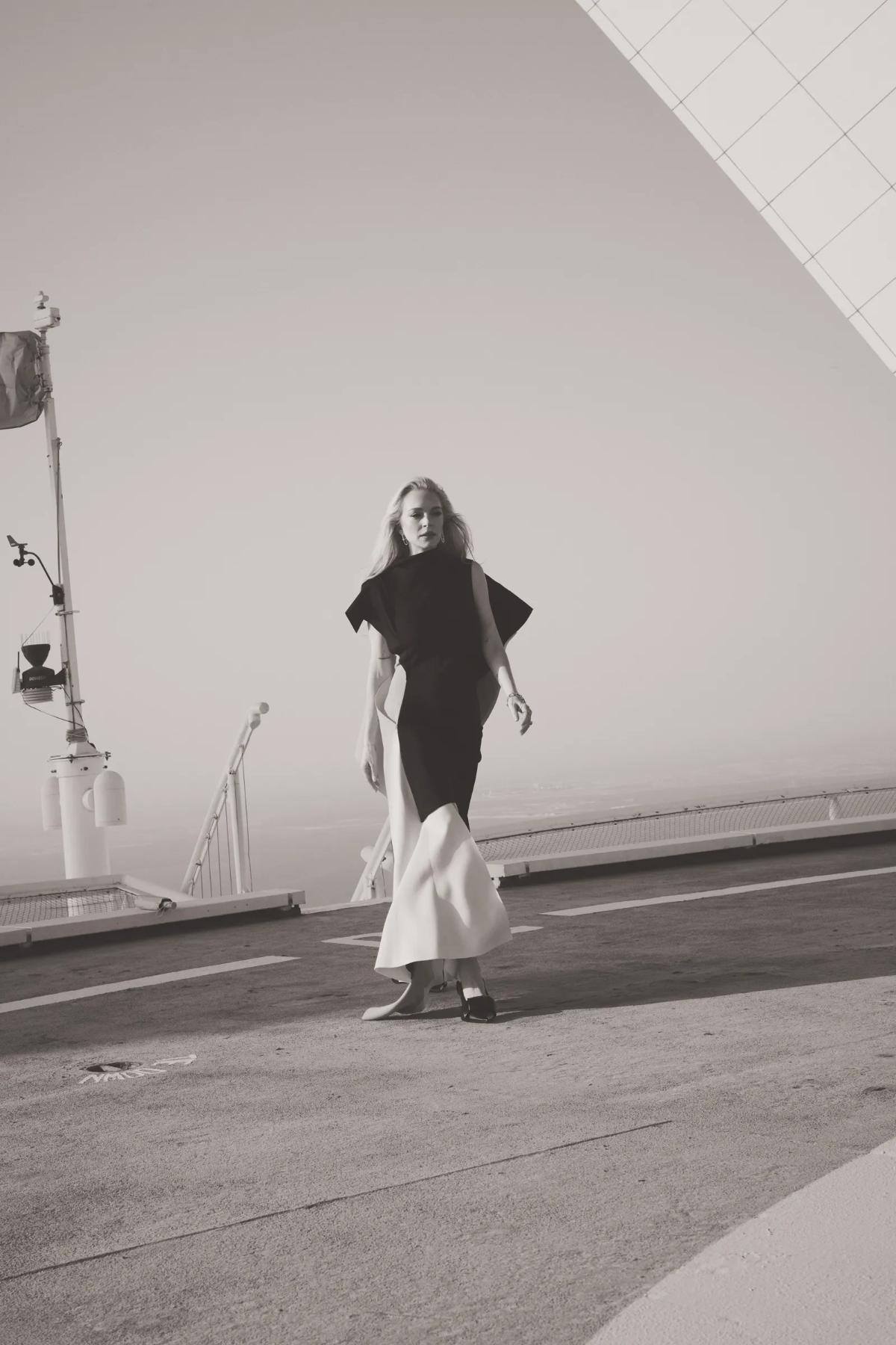 Линдзи Лохан заблеска на насловната страница на мартовското издание на списанието „Vogue Arabia“, позирајќи на хелидромот на хотелот „Jumeirah Burj Al Arab“ во Дубаи, на височина од 212 метри.