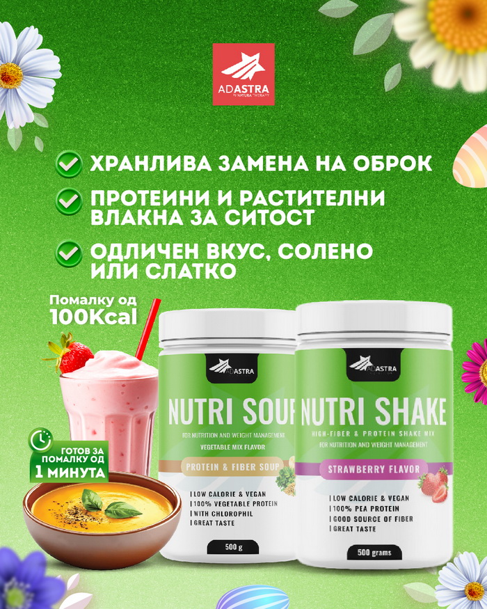 Дури, во овој период немора да се откажуваме ни од слаткото. Го имаме Nutri Shake нутритивно балансиран напиток богат со природни состојки, витамини, растителни протеини и диетални влакна – кој ја подобрува дигестијата и метаболизмот, и создава чувство на ситост. Има убав вкус на јагода, не содржи вештачки бои, адитиви или шеќери, што го прави овој шејк погоден за луѓе кои постат, но и за сите оние со активен животен стил.