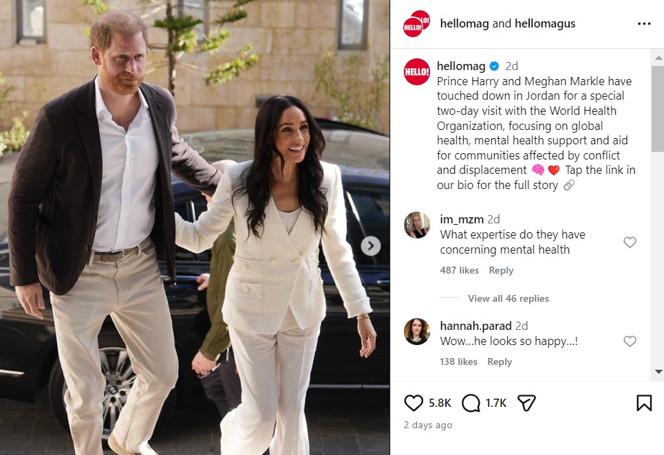 Посетата на принцот Хари и Меган Маркл, војводата и војвотката од Сасекс на Јордан, каде што со делегација на СЗО ги посетиле евакуираните пациенти од Појасот Газа, привлече големо медиумско внимание.