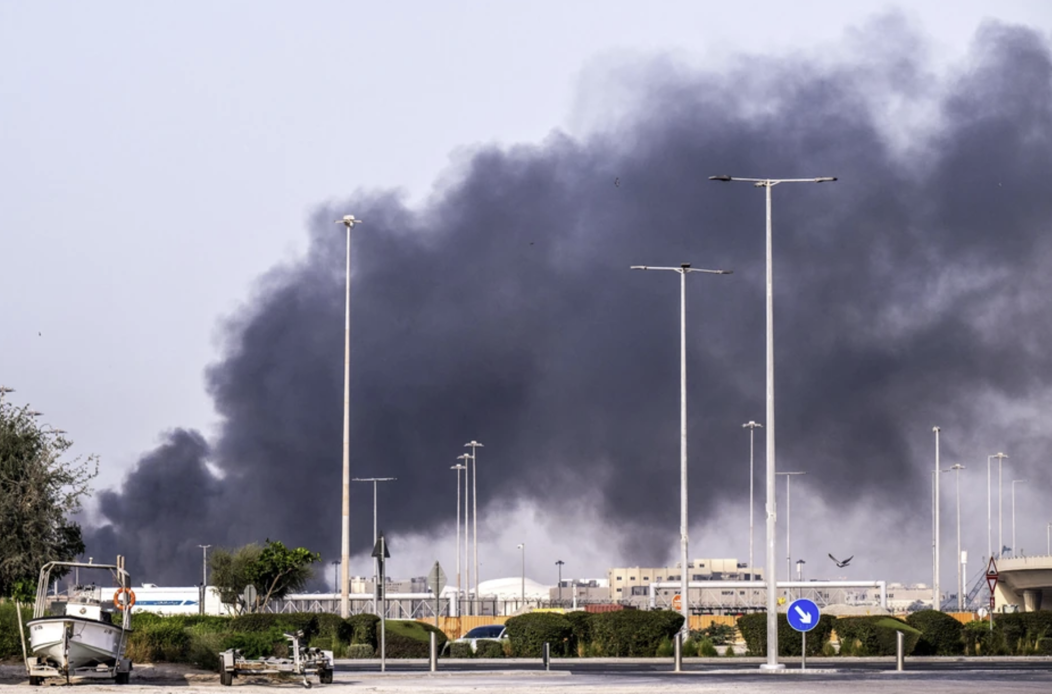 Иран подоцна соопшти дека три танкери за нафта биле погодени од ракети и дека горат.