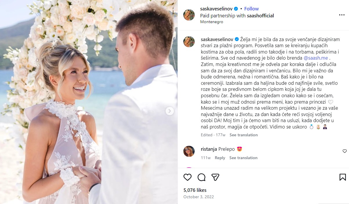 Ѓорѓе Ѓоковиќ и инфлуенсерката Сашка се венчале во септември 2022 година.