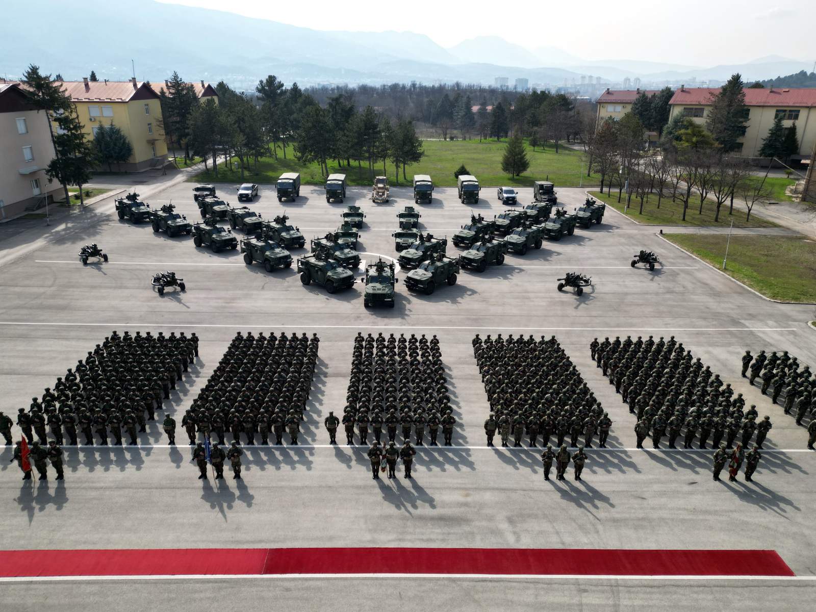 За време на посетата беше извршена смотра на построените единици, како и на опремата и средствата со кои располагаат Лесната пешадиска баталјонска група и декларираните единици од составот на Баталјонот на специјални сили.