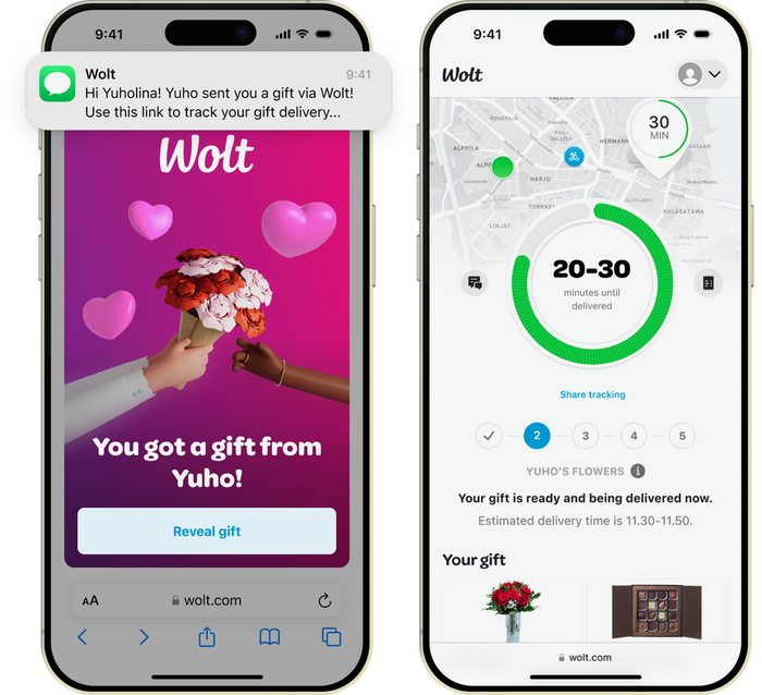 Wolt Gifting може да се користи за широк избор на „подарок-спремни“ опции достапни во апликацијата – од цвеќе, десерти и чоколади, до self-care производи, омилени оброци и внимателно одбрани артикли од локални продавници.