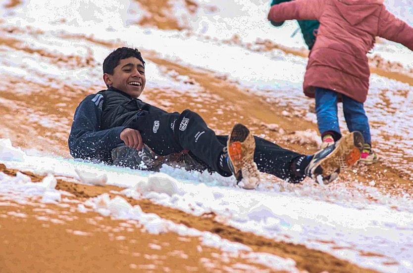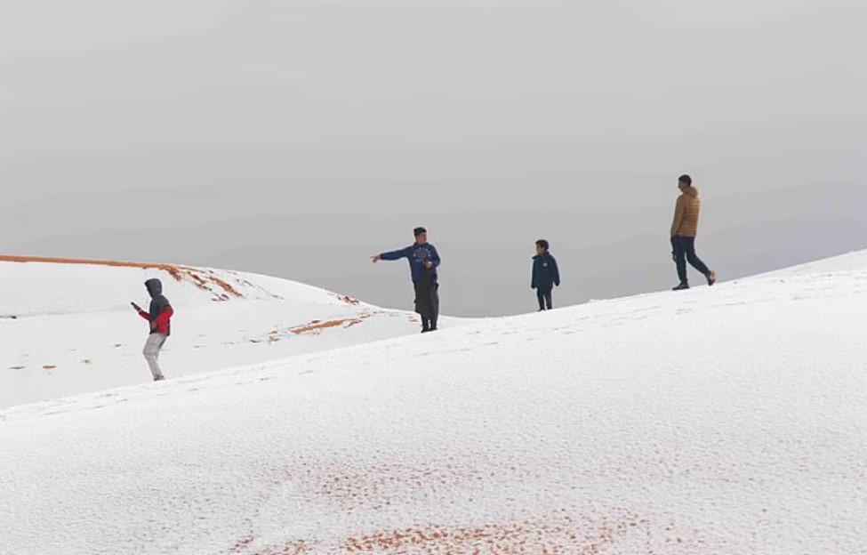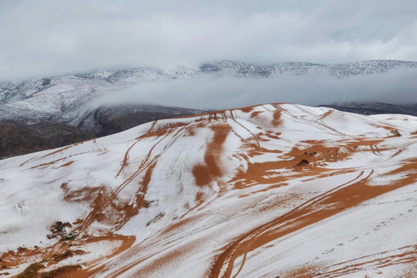 Во пустинскиот град Аин Сефра, на северот на Сахара, падна снег и изненади туристите и локалното население, а фотографиите од необичните сцени брзо се проширија по светот.
