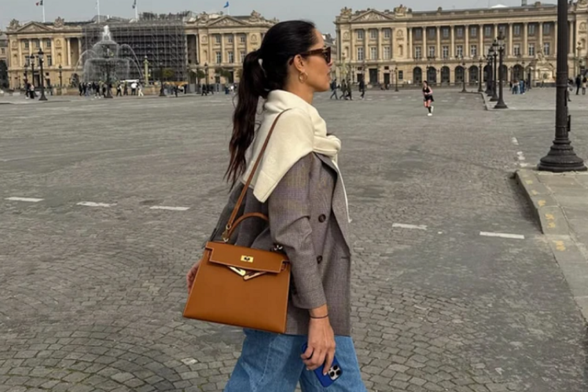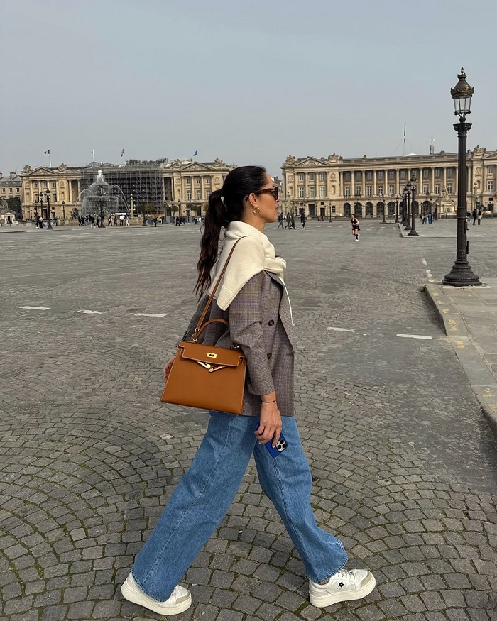 Ана избрала шик блуза во нежна боја, бели патики со подебел ѓон коишто многу трендсетерки ги комбинираат со фармерки, и чанта „Ермес“ во елегантна боја која е толку моќен детаљ што може да го разубави секој стил.