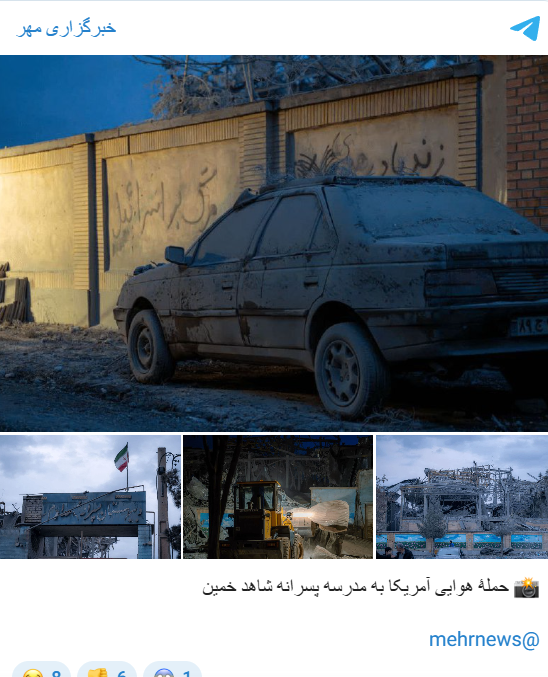 Рано утрово, училиштето за момчиња „Шахид Хомеини“ во иранскиот град Хомеин беше нападнато, а иранската новинска агенција Фарс го опиша инцидентот како „американско-израелски напад“. Објавени се и фотографии на кои се гледа голема штета на училишната зграда, објавија иранските новински агенции.
