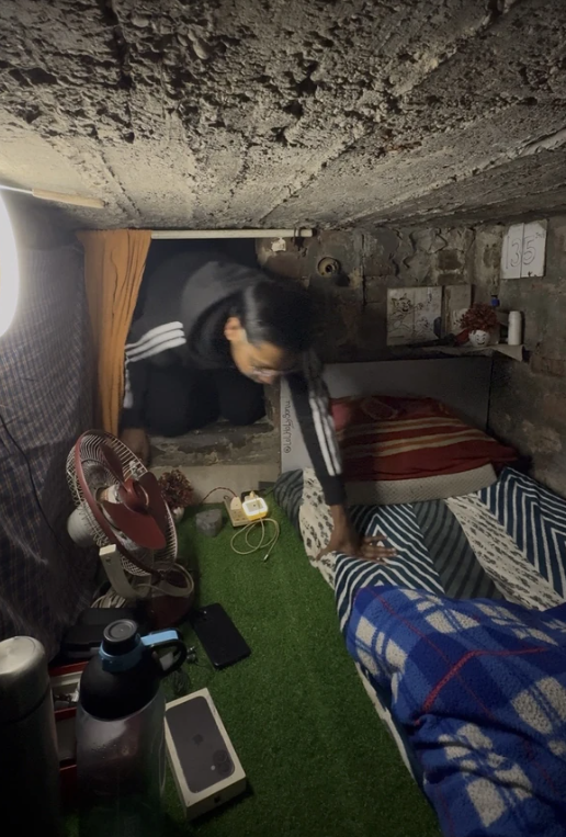 На прв поглед делува како сцена од екстремна реалити програма. Бетонската просторија висока 86 сантиметри, без прозорци и со кирија од околу 40 фунти месечно за овој човек била идеална за заработка.