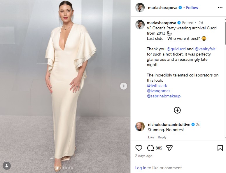 Марија Шарапова уште еднаш покажала дека има беспрекорно чувство за мода и дека елеганцијата ѝ е второ име. Појавувајќи се во прекрасен фустан на доделувањето на наградите Оскар во Лос Анџелес.