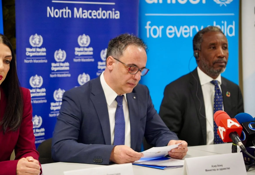 Министерот за здравство, Азир Алиу на заедничката прес-конференција со претседателката на Комитетот за безбедно мајчинство, д-р Ирена Алексиоска Папестиев и шефот на Канцеларијата на СЗО во Македонија, д-р Аким Али, како и претставници на УНИЦЕФ и УНФПА ги презентираа резултатите од најновиот извештај на меѓуагенциската група на Обединетите нации за проценка на смртноста кај децата за 2025 година.