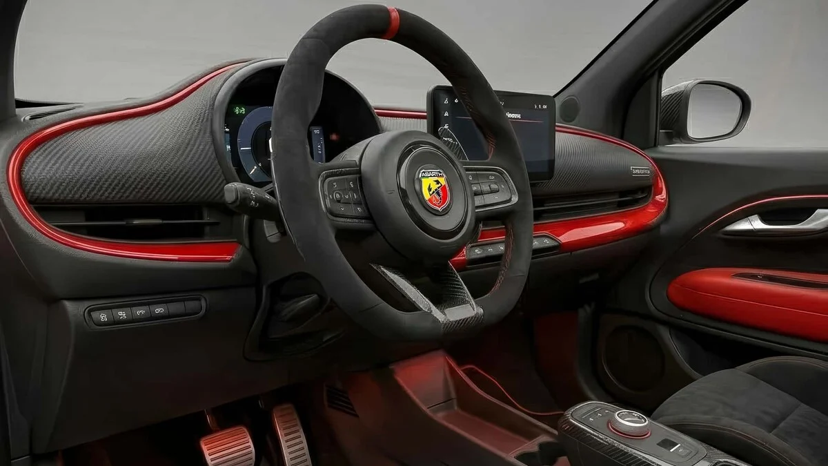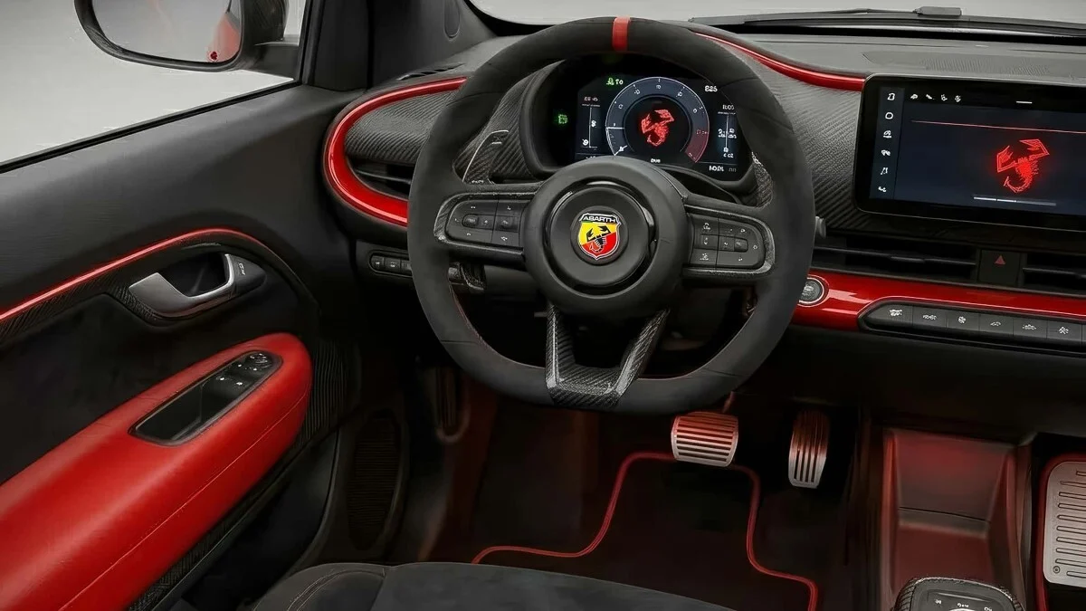 Внатрешноста ја спојува ретро едноставноста со модерна технологија – физички копчиња, централен екран, живописни бои.
