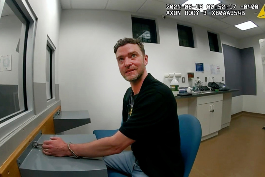 Снимката од апсењето на американскиот пејач Џастин Тимберлејк, кого полицијата во јуни 2024 година во местото Саг Харбор, во областа Хемптонс го запрела поради сомнение дека возел под дејство на алкохол, денеска е објавена.