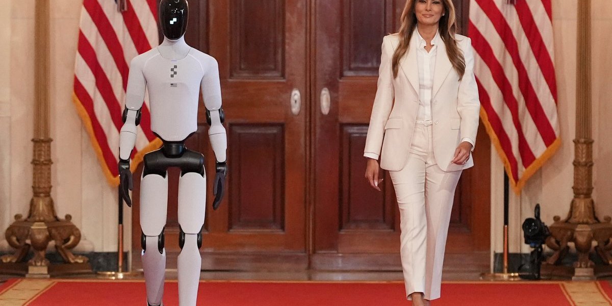 Меланија Трамп често привлекува внимание, но сите погледи и камери вчера беа насочени кон нејзиниот хуманоиден придружник, пренесува „AP“. Роботот ја придружуваше првата дама на Соединетите Американски Држави до Источната соба на Белата куќа, на последниот ден од самитот што таа го свика преку својата глобална иницијатива „Заедничко негување на иднината“.