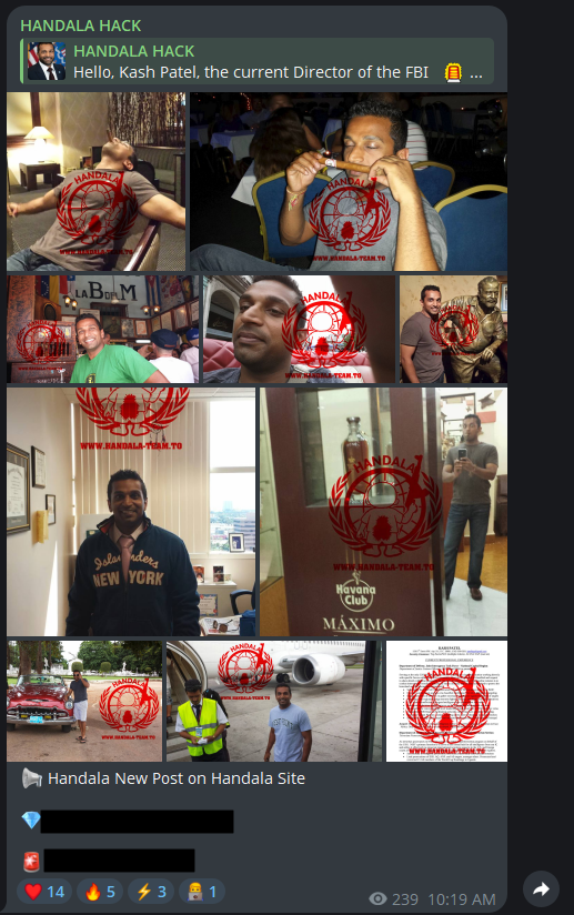 Хакерската група „Хандала Хек Тим“ (Handala Hack Team) на својата интернет-страница објави дека Пател „сега ќе го најде своето име на списокот на успешно хакирани жртви“.