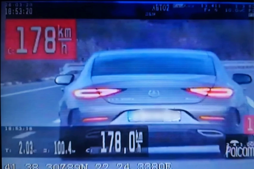 Вчера во 18:55 часот на експресен пат Штип – Радовиш, од страна на полициски службеници од Мобилната единица за безбедност на сообраќајот на патиштата при Сектор за сообраќајни работи со помош на специјално возило – пресретнувач на Министерството за внатрешни работи измерена е брзина на движење на патничко моторно возило „мерцедес“ со скопски регистарски ознаки од 178 километри на час надвор од населено место каде што максималната дозволена брзина е 110 километри на час, извести МВР.