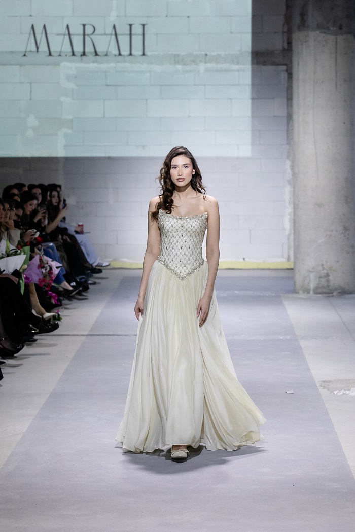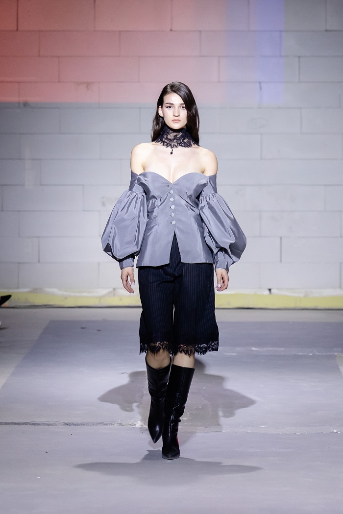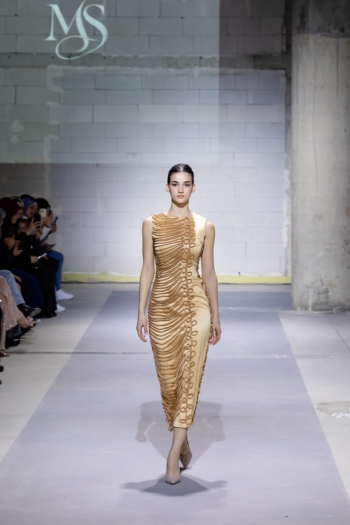 Групната ревија на Марија Станојовска и Маригoна Рахмани ја стабилизираше оваа енергија. Кај Станојовска доминираше контролиран, речиси архитектонски пристап кон формата, додека кај Рахмани се појави мекост и елеганција, со нагласена текстура и движење. Овој дел од програмата функционираше како премин, од колективна експресија кон индивидуален авторски став. И токму таму, без потреба од спектакл, дојде финалето.