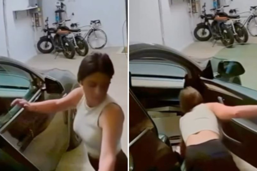 На снимката од надзорна камера првично се гледа како девојката внесува кутии во автомобилот, што на почетокот изгледа како обична преселба. Но, набрзо однесувањето се менува. Таа почнува грубо да ги фрла кутиите и да ги потпира на возилото без никаква грижа, притоа удирајќи го од ѕидот на гаражата. Во еден момент зема тврд предмет и удира по предниот дел од автомобилот, оставајќи видливи вдлабнатини и гребнатини.