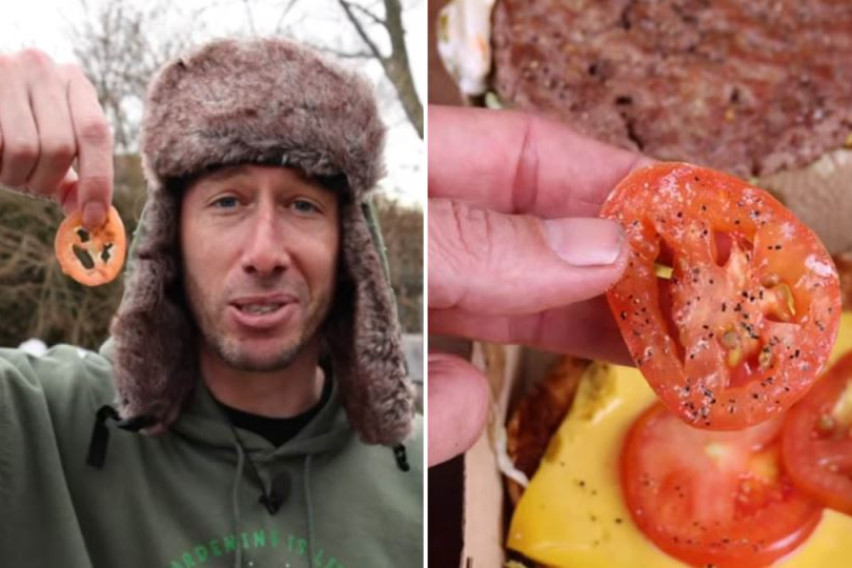 [ВИДЕО] Засадил семе од домат од плескавица: Се шокирал кога видел што израснало во градината по 3 месеци