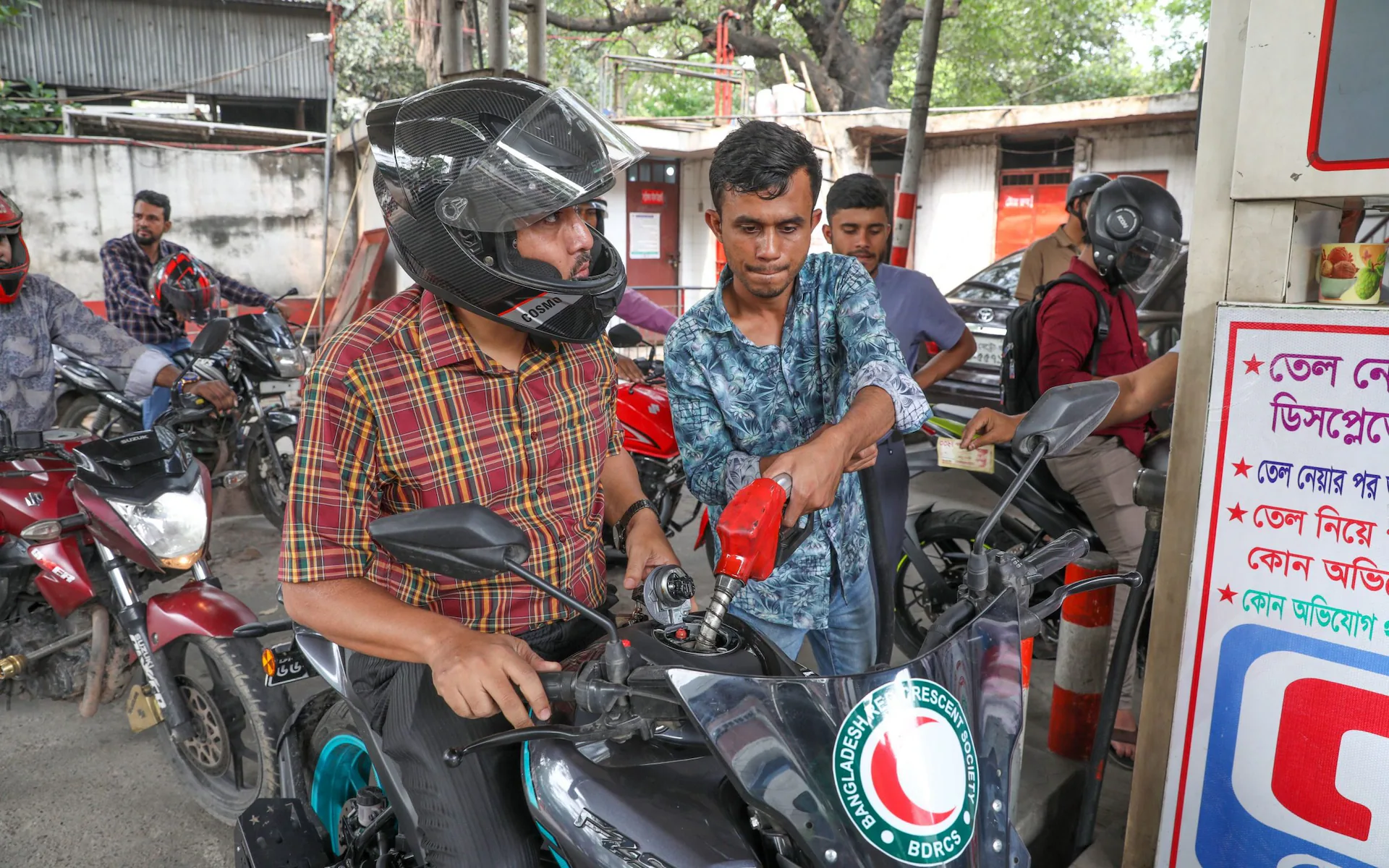 Во главниот град Дака, возачите со часови чекаат во редици на бензинските пумпи, универзитетите се затворени, а на државните службеници им е наложено да ја ограничат потрошувачката на електрична енергија. „Во овој ред чекам веќе четири часа и сè уште не знам дали воопшто ќе наточам гориво. Ако се вратам дома со празен резервоар, моето семејство вечерва нема да има што да јаде. Работата е многу едноставна“, раскажал таксистот Абул Калам.