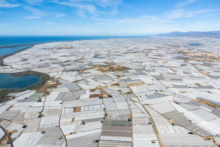 Повеќе од 30.000 хектари земја се покриени со пластика, геометриски лавиринт пет пати поголем од Менхетн, каде секоја година се произведуваат 3,5 милиони тони зеленчук, од домати, краставици, пиперки, тиквички до модри патлиџани и дињи… доволно за да се прехрани половина милијарда луѓе и да се генерира промет поголем од три милијарди евра.