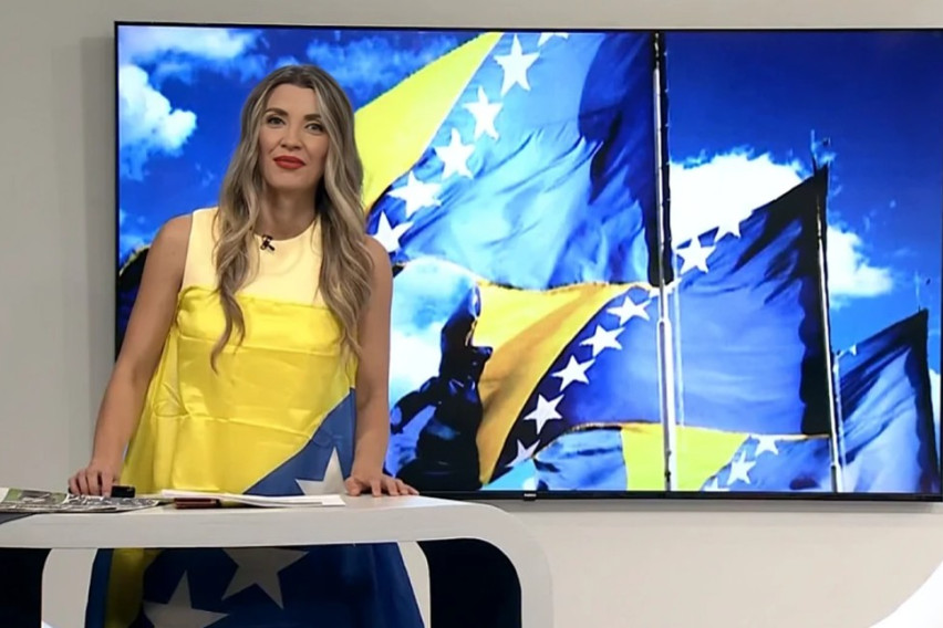 Водителката во живо во програмата претстави фустан што го краси необичен детаљ – поточно, знамето на Босна и Херцеговина.