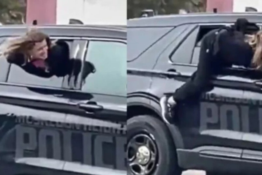 Тогаш полицајците ја уапсиле и ја сместиле на задното седиште од нивниот автомобил, а снимката што се појави на социјалните мрежи ја прикажува како бега низ прозорецот на полициски автомобил.