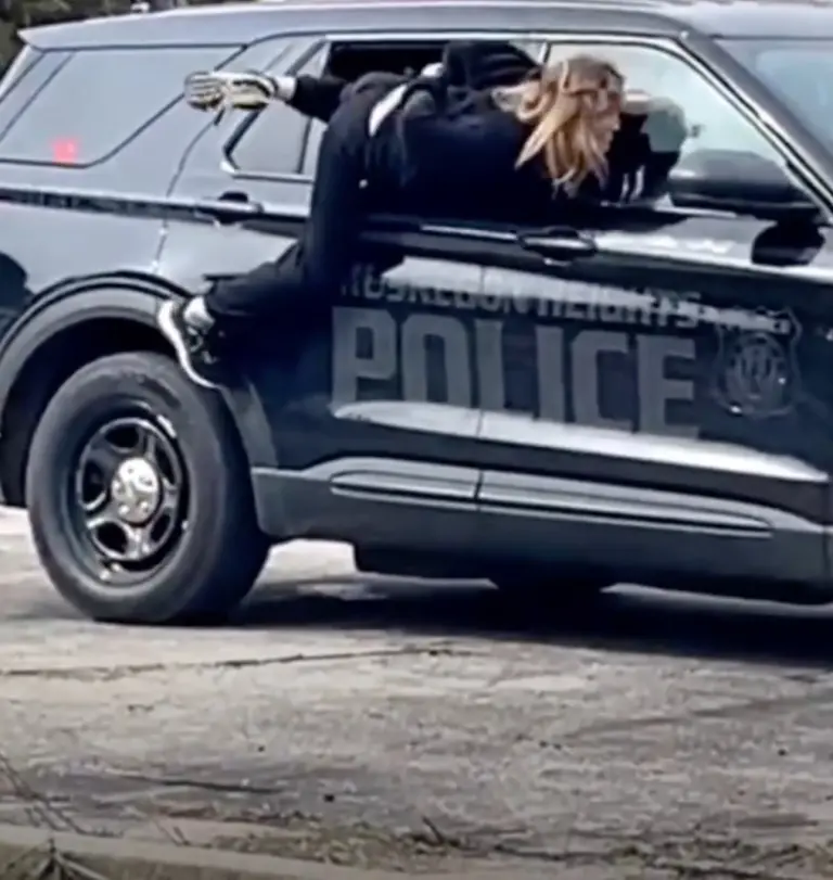 На социјалните мрежи стана хит снимка од жена како бега од полициски автомобил во американска сојузна држава Мичиген.