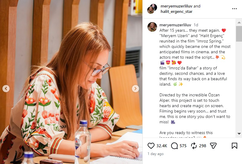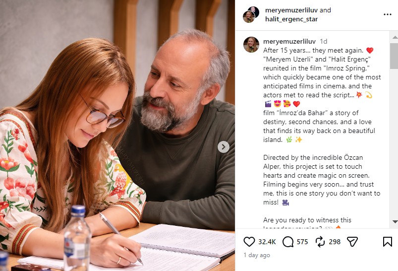 Дуото, кое обожавателите долго време посакуваа повторно да го видат заедно, Ергенч и Узерли, го направи првиот чекор кон снимањето со повторното обединување на пробното читање на нивниот филмски проект „Пролет на Имроз“ (Imroz’da Bahar).