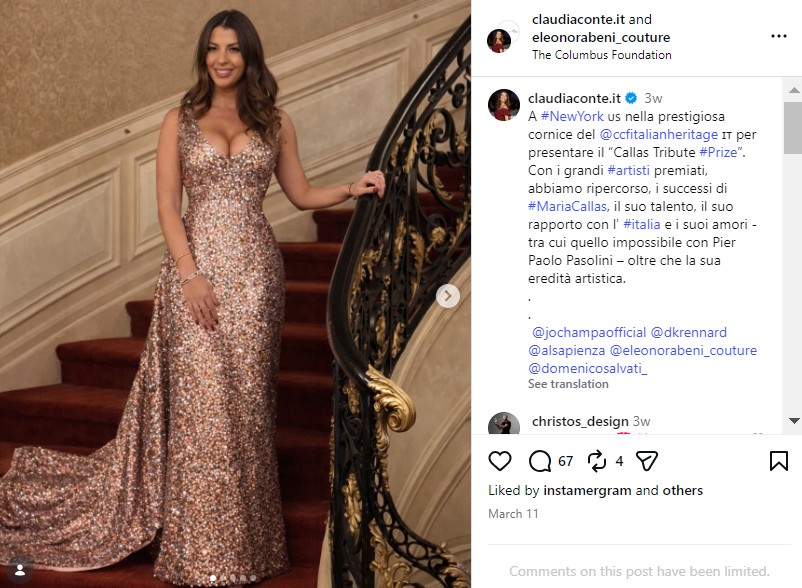 Се наведува дека Конте извршувала разни јавни функции и консултантски ангажмани, вклучувајќи ја и функцијата уметничка директорка на италијански филмски фестивал, а на нејзиниот профил на Инстаграм се гледа дека се дружела со министри, политичари и со папата Лав.