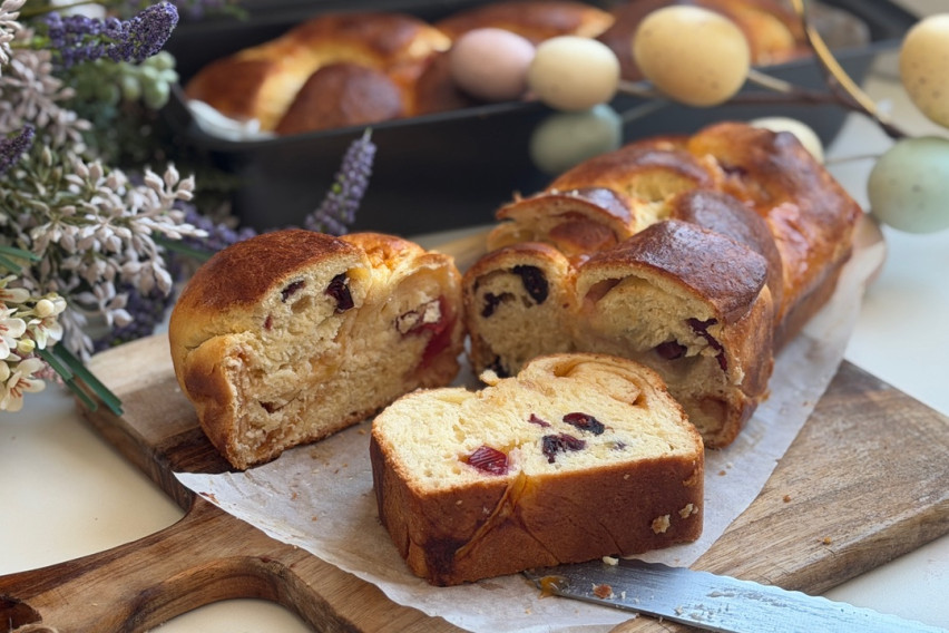 Martina го прикажува целиот процес на подготовка на овој празничен рецепт, од замесувањето на тестото, па сè до финалното печење. Рецептот вклучува сув квасец, јајца, шеќер, растопен путер, млеко и брашно, додека филот е комбинација од желе бомбони, суво овошје и џем. По нараснувањето на тестото, смесата се дели, се полни, се оформува во плетенка и се пече, добивајќи го препознатливиот изглед и вкус што го прават милибродот омилен велигденски специјалитет.