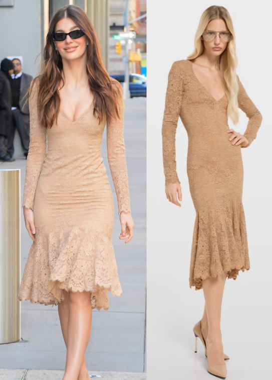 Фустанот ја истакнува витката фигура на Камила, а бојата одлично се вклопува со нејзиниот тен. Изданието го комплетирала со отворени потпетици во црна боја, потпишани од „Парис Тексас“, модел Лидија.