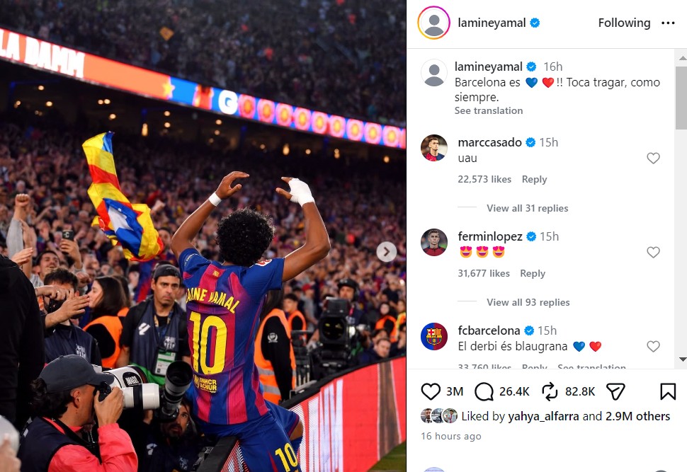 – Барселона е сино-црвена! Време е да го проголтате тоа, како и секогаш, – порача Јамал со славеничка фотографија.