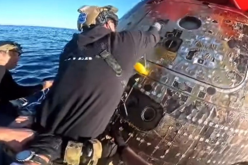 Астронаутот на НАСА, Рид Вајсман, објави видео на кое се гледа моментот кога, по слетувањето на Земјата, медицинскиот тим и друг персонал ја отвораат вратата на капсулата „Orion spacecraft“, со која прелетаа и покрај Месечината.