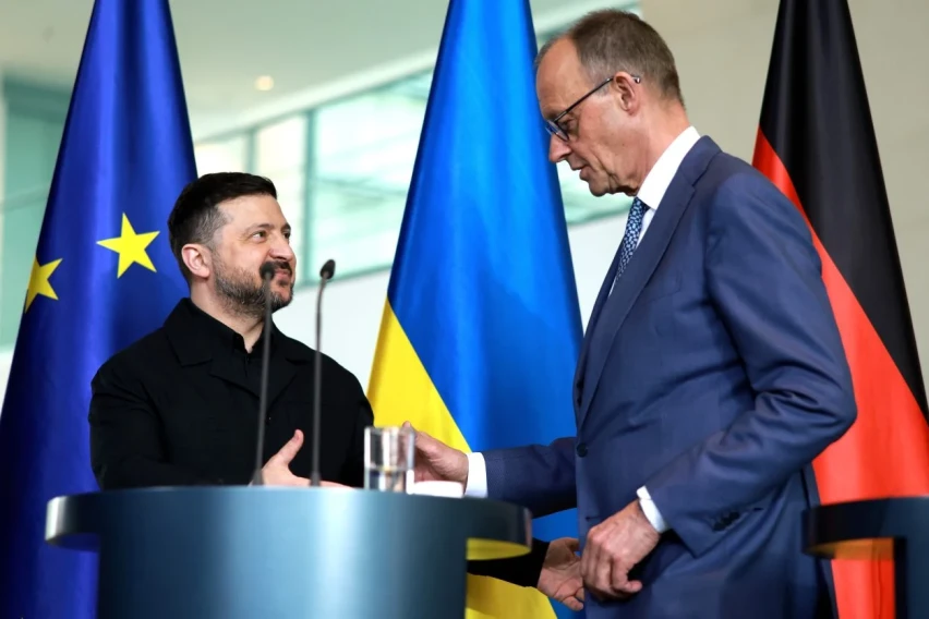 „Со нашата поддршка за Украина, истовремено ги зајакнуваме германските и европските одбранбени капацитети и нашата индустриска база“, рече германскиот канцелар Фридрих Мерц на заедничката прес-конференција со украинскиот претседател Володимир Зеленски.