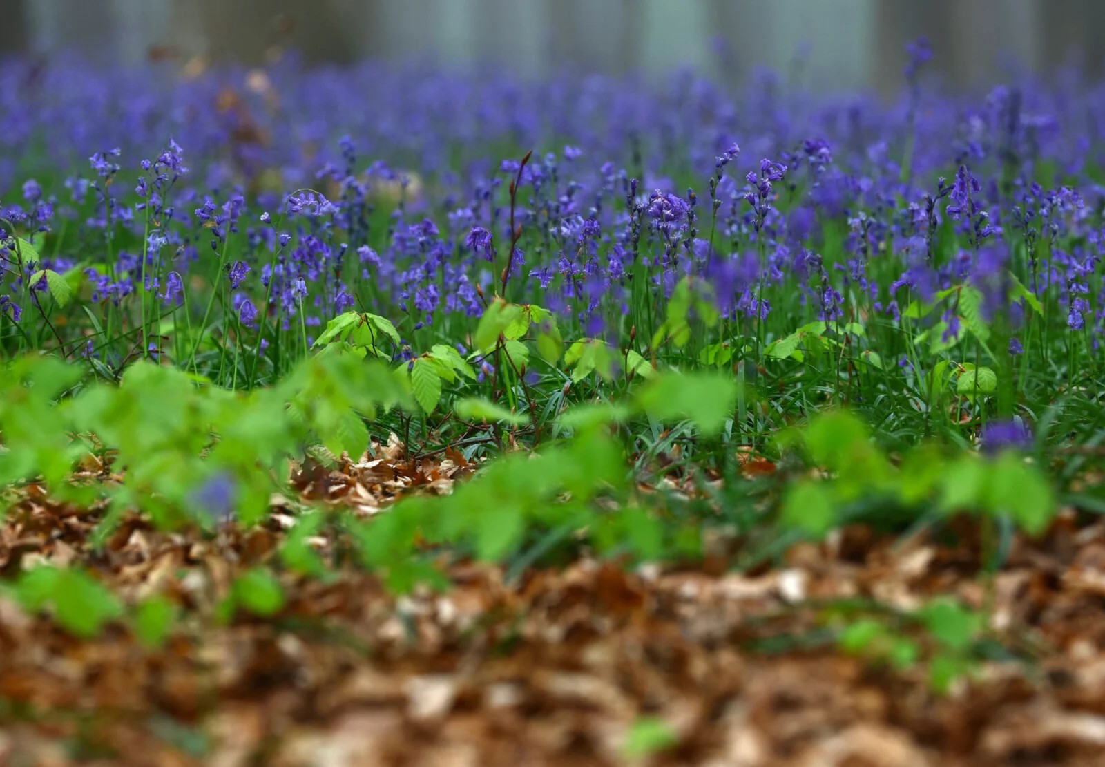 Во текот на неколку недели, големи делови од шумата стануваат виолетово-сини додека растенијата цутат, а врвот обично го достигнуваат во средината на април.