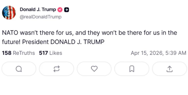 Во друга објава, тој ја повтори својата веќе добро позната критика кон Северноатлантскиот сојуз. Тој рече дека НАТО „не бил со нас и нема да биде со нас во иднина“.