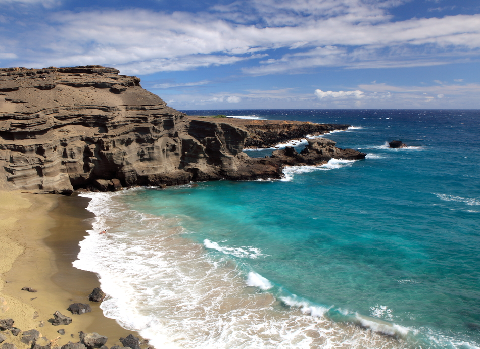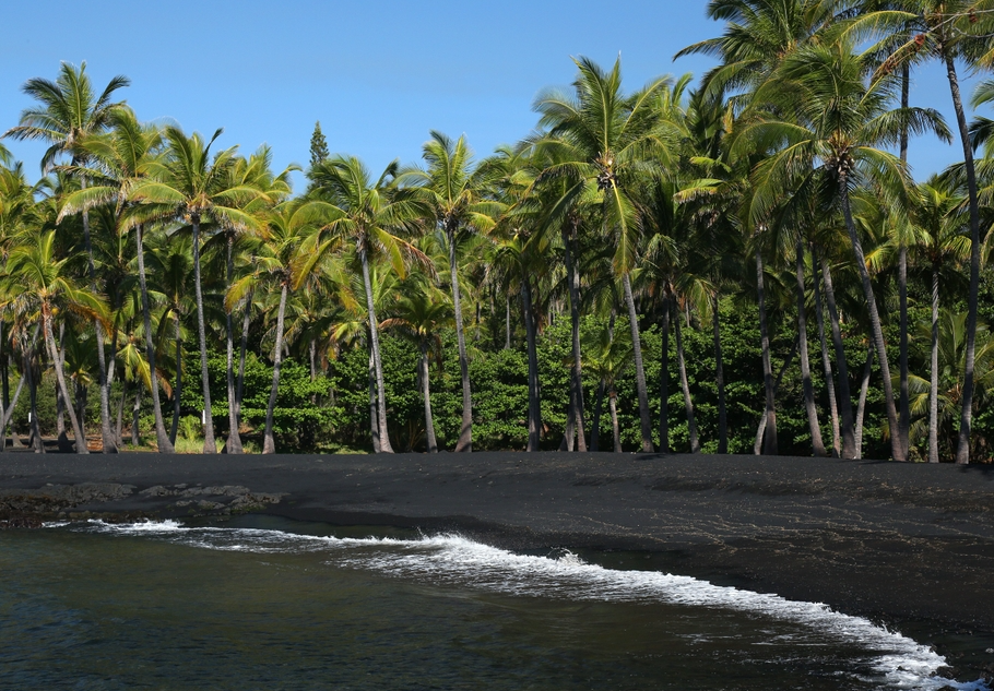 Оваа црна плажа на Големиот Остров на Хаваи е во остра спротивност со совршениот бел песок. Песокот е составен од згмечена лава, која се формира кога жешката лава ќе дојде во контакт со морската вода. Покрај нивниот спектакуларен изглед, морските желки често може да се видат како одмараат на топли карпи.