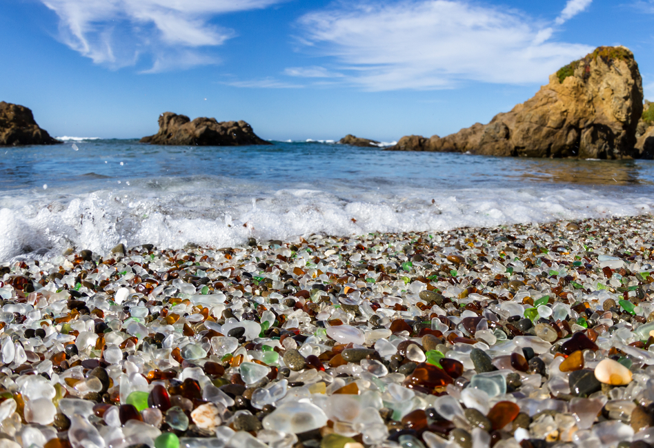 Таму каде што ѓубрето порано се фрлало во морето, природата создала уметничко дело: со децении, брановите ги поместувале парчињата стакло напред-назад сè додека не се формирале прекрасни камчиња. Денес, плажата е покриена со безброј шарени камчиња „морско стакло“. Посетителите наоѓаат зелени, сини и бели стаклени камења што светкаат на сончева светлина - споменик на загадувањето на животната средина и фасцинантна туристичка дестинација во исто време.