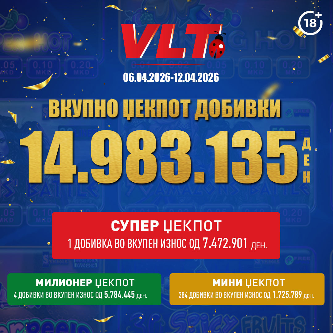 Најпосакуваната ВЛТ добивка е освоена на видеолотариските терминали кај деловниот соработник „Спортлајф“, на 09.04.2026 година во Скопје. Среќната игра е 40 Брнинг хот.