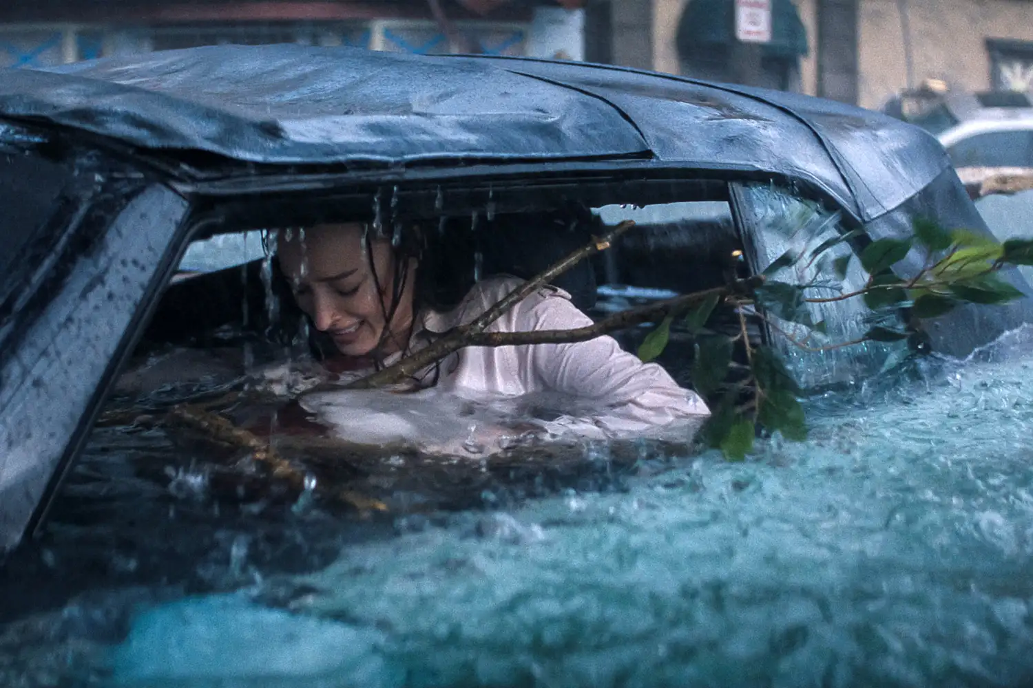 Во филмот „Thrash“ главните улоги ги толкуваат Фиби Дајневор како Лиса, бремена жена која останува заробена за време на бурата, и Витни Пик во улогата на Дакота. Значајна улога има и Џимон Хонсу, кој го глуми докторот Дејл Едвардс.