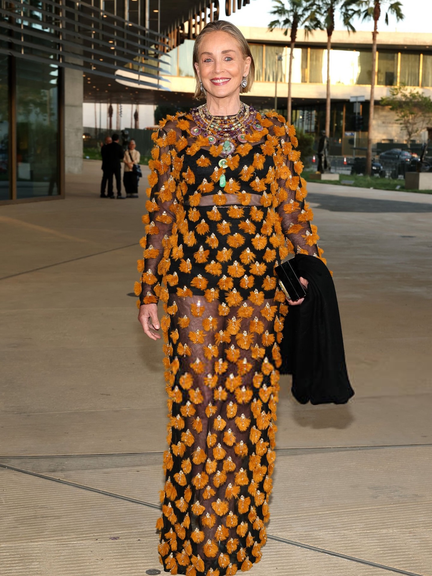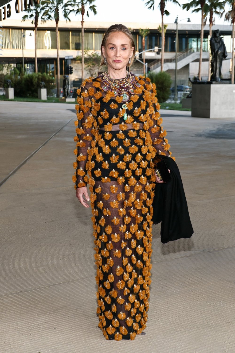 Шерон Стоун повторно го привлече вниманието на црвениот килим во Лос Анџелес, појавувајќи се во впечатлива креација што ги спојува гламурот и смелоста.