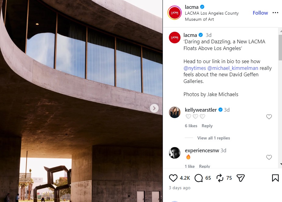 Отворањето на новите галерии на Дејвид Гефен во рамки на „LACMA“ собра бројни гости од светот на уметноста, филмот и модата. Овој настан во последните години станува едно од клучните места за средба на креативната индустрија, но и платформа за истакнување врвни модни изданија.