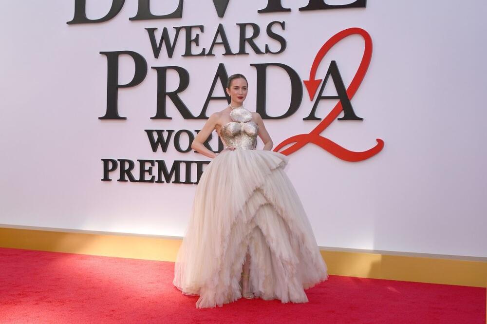 Актерката Емили Блант блесна на премиерата на филмот „Ѓаволот носи Прада 2“ во Њујорк, а за оваа пригода носеше спектакуларен фустан од „Schiaparelli“, кој го комбинираше со луксузен накит инспириран од „ливчиња од роза што танцуваат на ветрот“.