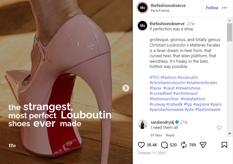 Но, вистинскиот детаљ што привлекол најмногу погледи биле чевлите. Гага го носела моделот „Matières Fécales x Christian Louboutin ’Hannah“, впечатливи лакирани платформи со извиткан лак наместо класична потпетица.
