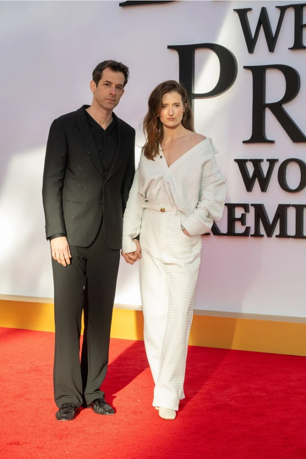 Грејс Гамер изгледала многу шик во монохроматска бела модна комбинација, додека нејзиниот сопруг, познатиот музички продуцент, Марк Ронсон избрал полежерен црн костум.
